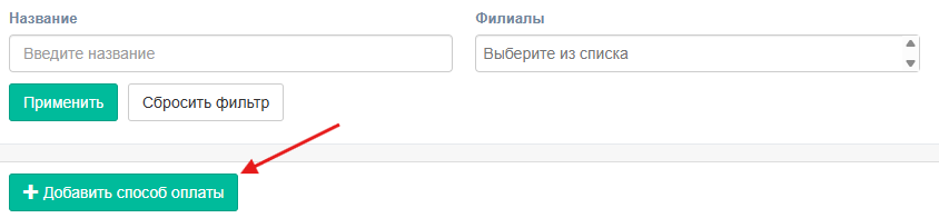 Кастомные способы не требуют отдельного подключения. После создания и сохранения они сразу появляются в выпадающем списке на тех филиалах, для которых вы их включили. Их можно сразу выбирать при продаже, и они будут отображаться в отчетах.