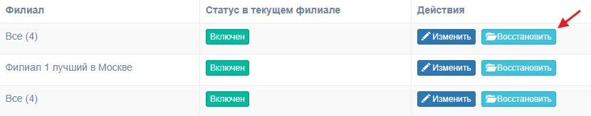 В отличие от архивации, это скрывает способ только для выбранного филиала.