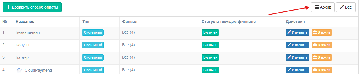 И системные, и кастомные способы нельзя удалить, но их можно архивировать. Чтобы отправить способ в архив, администратор нажимает кнопку «Архив» в его строке.