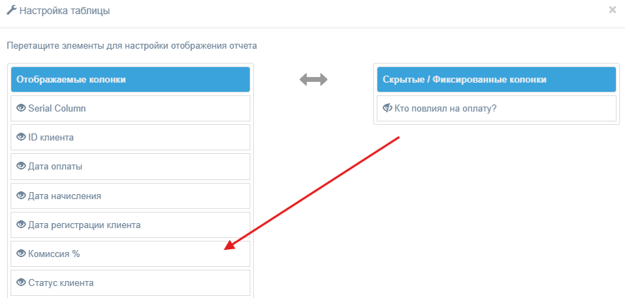Чтобы видеть комиссию в отчетах, ее нужно добавить в настройках столбцов — по умолчанию это поле скрыто. Чтобы его добавить: