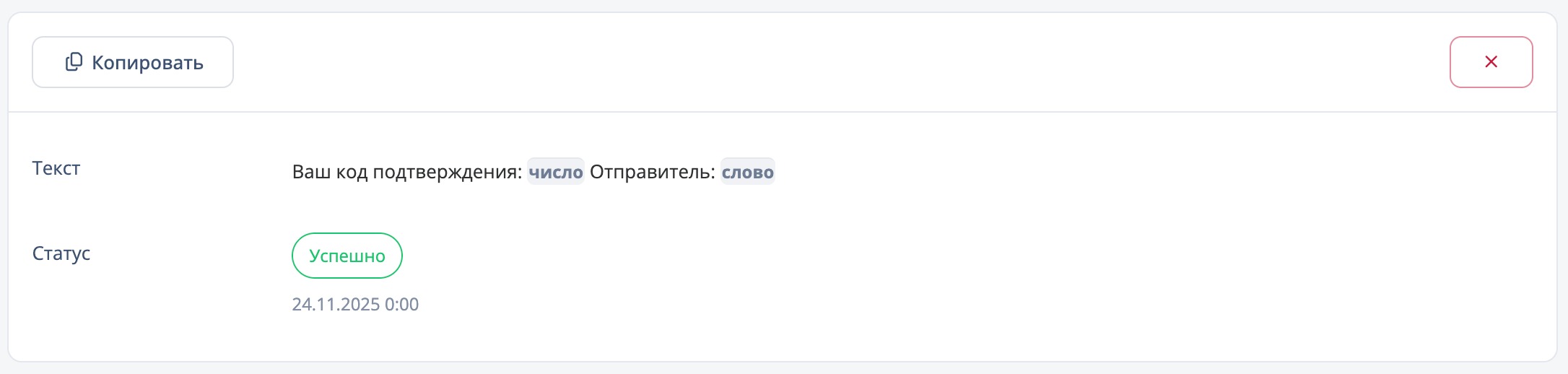 После настройки создайте шаблон для sms-сообщений. Это увеличит скорость получения sms.
